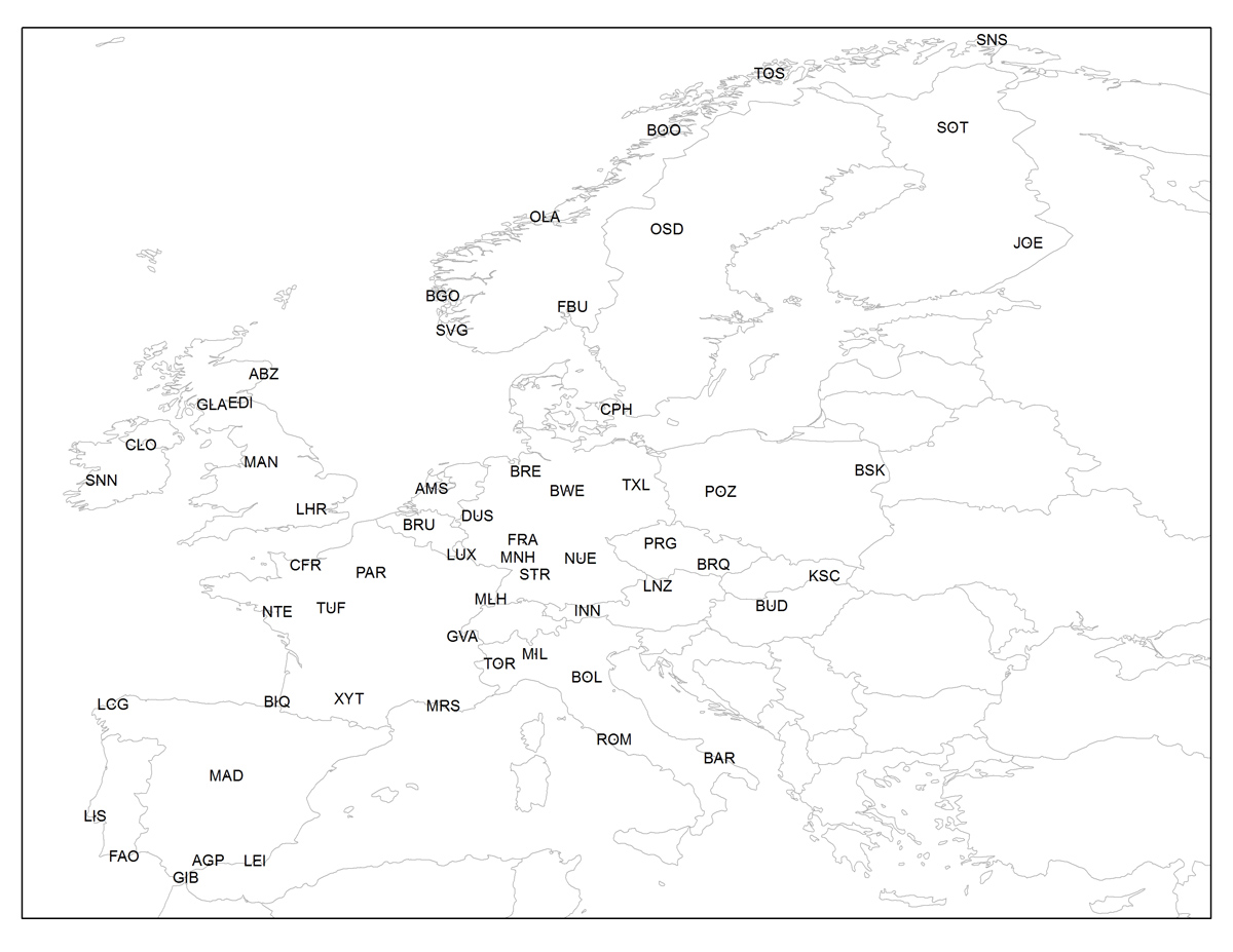 Below are maps of the available stations for the SSC in North America and Europe, with stations shown by their 3-letter ID code. Thanks to Mike Allen